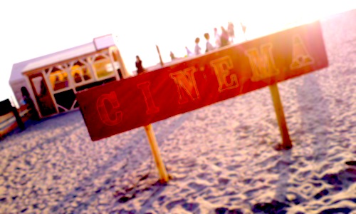 逗子のビーチに大きなスクリーン