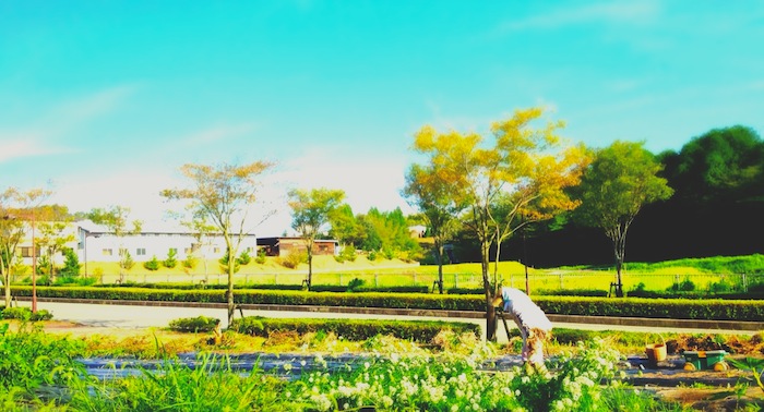 前には畑