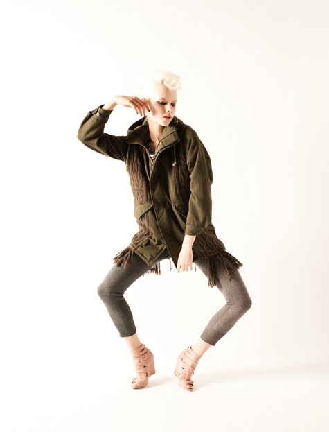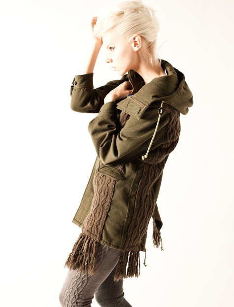 マフラーと合体したようなモッズコートや