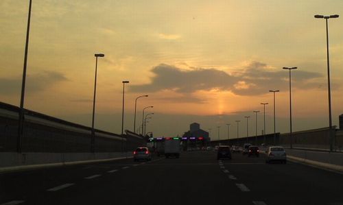 朝早く出て夕焼けのような太陽を眺めながら