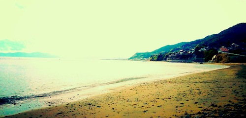 作業が終わり、下の浜辺に行って